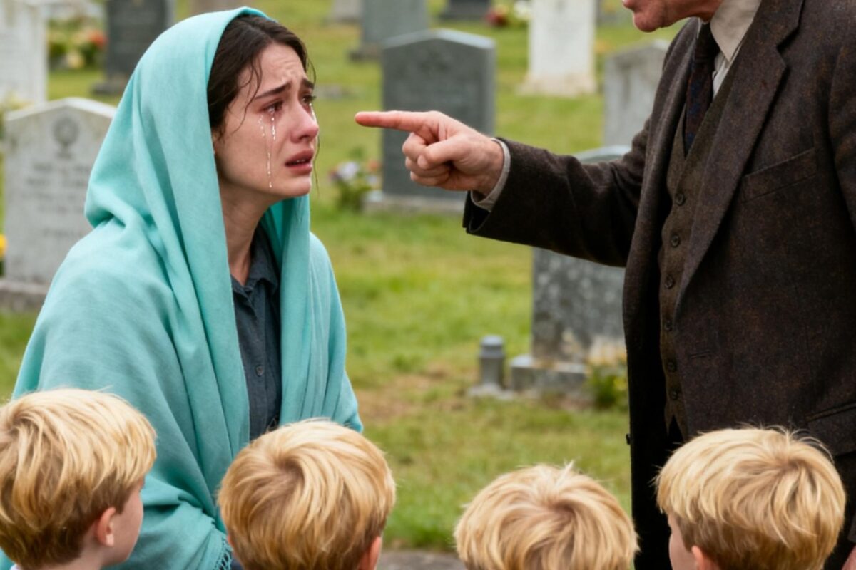 Upon finding a young woman kneeling before his son’s headstone, the tycoon shouts, “What are you doing at my son’s grave?” without imagining the weight of the words he would hear next. The woman, clutching two identical children, tearfully reveals a secret capable of shaking the world he built.